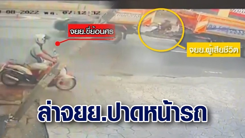 สุดสลด! จยย.มักง่าย ขี่รถย้อนศร ก่อนปาดหน้า รถยนต์เบรกกะทันหัน จยย. ผัว – เมีย ขี่ตามหลัง หักหลบเสียหลักถูกรถพ่วง 22 ล้อ ทับร่างดับทั้งคู่ เด็ก 2 พี่น้อง ชีวิตเคว้ง สูญเสียเสาหลัก