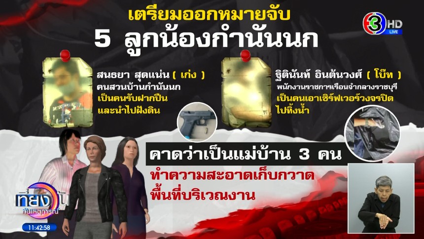 ออกหมายจับ 5 คนงานบ้าน ‘กำนันนก’ เอี่ยวทำลายหลักฐาน ‘เก่ง’ ร่ำไห้สารภาพเป็นคนฝังปืน