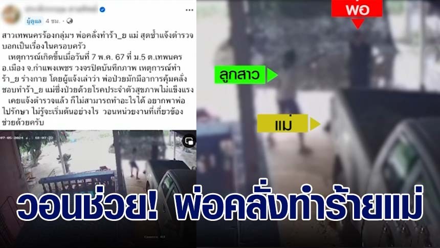 ลูกสาวร้องขอความช่วยเหลือ ระบุ พ่อป่วยจิต เกิดคลุ้มคลั่งทำร้ายแม่ วอนหน่วยงานหาทางออก เผย เคยแจ้งความแต่ตำรวจบอกเป็นเรื่องในครอบครัว