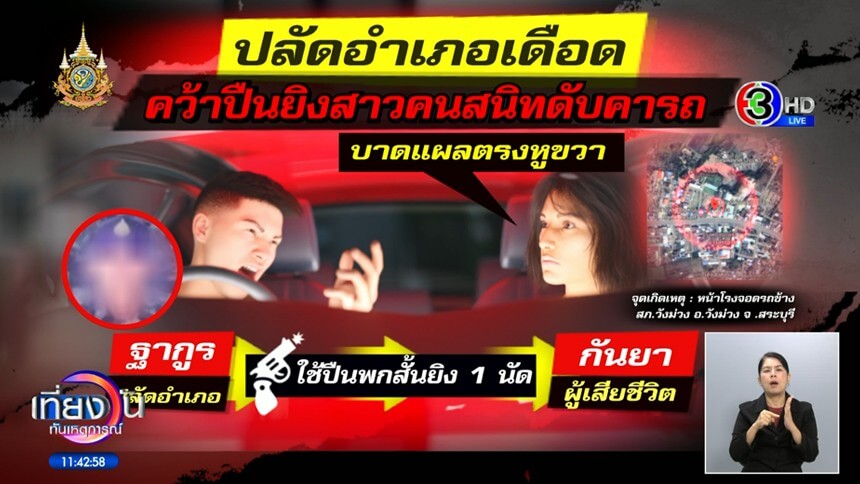 ปลัดอำเภอปืนโหด พบรักสาวมีเจ้าของ แอบคบหาดูใจ ก่อนถูกย้ายกลับมาประจำสระบุรี แชตลวงแฟนสาวมาเจรจาจ่ายค่าเสียหาย คดีทำร้ายร่างกาย ก่อนจ่อยิงดับคารถ แล้วเดินเข้าไปมอบตัวกับตำรวจ