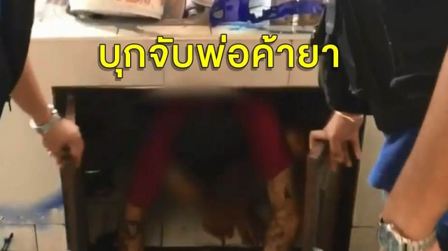 นาทีบุกจับพ่อค้ายาร้อยเอ็ด หนีวุ่นซุกตู้เก็บของใต้อ่างล้างจาน