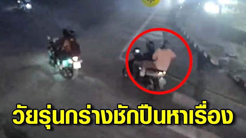 วัยรุ่นสุดกร่าง หาว่าหนุ่มมองหน้าตอนติดไฟแดงถึงขั้นชักปืนขึ้นมาขู่กลางห้าแยกปากเกร็ด