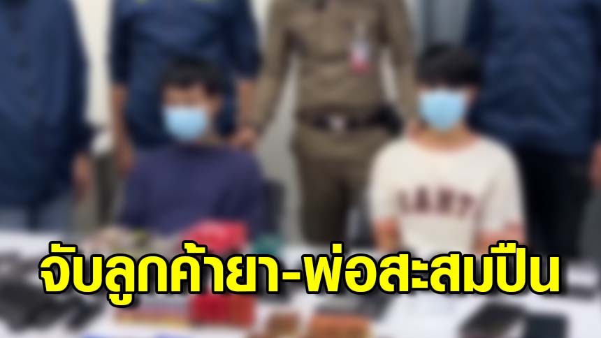 มาเป็นแพ็กคู่! ตำรวจบุกจับลูกค้ายา พ่อสะสมปืนเถื่อน