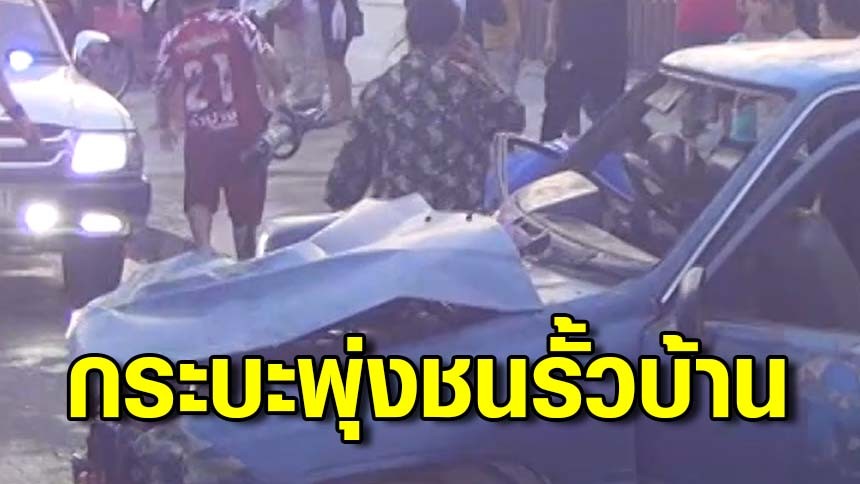 กระบะชนท้ายกระบะ พุ่งไถลชนรั้วบ้านพัง คนเจ็บติดคารถ 2 ราย