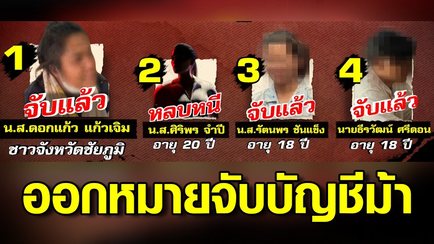 หมายจับที่ 1 น.ส.ดอกแก้ว ชาวจังหวัดชัยภูมิ (จับแล้ว)