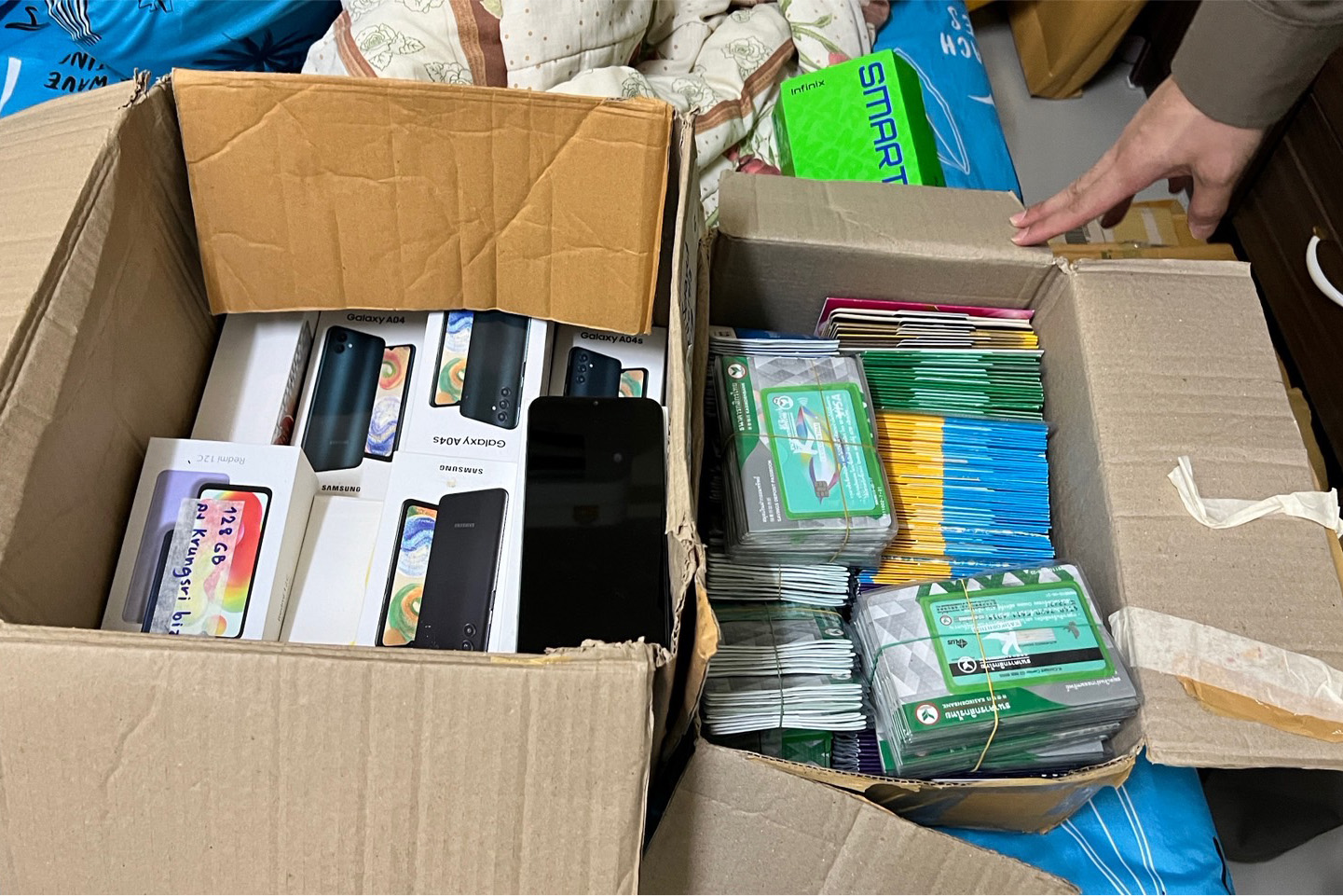 ต่อมาเมื่อวันที่ 30-31 มกราคม 2567 เจ้าหน้าที่ตำรวจ กก.2 บก.ปอท. พร้อมด้วย บก.ป., บก.ปคบ., บก.รน. และ บก.ทล. บูรณาการกำลังร่วมกันตรวจค้นจับกุม กลุ่มผู้ร่วมขบวนการการกระทำความผิดดังกล่าว จำนวนทั้งสิ้น 10 จุด โดยแบ่งเป็นพื้นที่กรุงเทพฯ 2 จุด, ภูเก็ต 6 จุด, เชียงราย 1 จุด และหนองบัวลำภู 1 จุด สามารถจับกุมผู้ต้องหาได้ จำนวน 7 ราย (กลุ่มบัญชีม้า 5 ราย, กลุ่มจัดหาบัญชีม้าและฟอกเงิน 2 ราย) สามารถตรวจยึดทรัพย์สินที่เกี่ยวข้องกับการกระทำความผิด จำนวนหลายรายการ อาทิเช่น อุปกรณ์คอมพิวเตอร์ (PC) จำนวน 10 เครื่อง, คอมพิวเตอร์โน้ตบุ๊ก จำนวน 2 เครื่อง, โทรศัพท์มือถือ จำนวน 53 เครื่อง (ผูกแอปพลิเคชันธนาคารพร้อมใช้งาน จำนวน 42 เครื่อง), เครื่องใหม่ จำนวน 11 เครื่อง), สมุดบัญชีธนาคาร จำนวน 1,113 เล่ม, บัตรกดเงินสด (ATM) จำนวน 1,065 ใบ และกล่องโทรศัพท์เปล่า จำนวน 77 กล่อง อีกทั้งยังได้ตรวจยึดทรัพย์สินมีค่าอีกจำนวนหลายรายการ