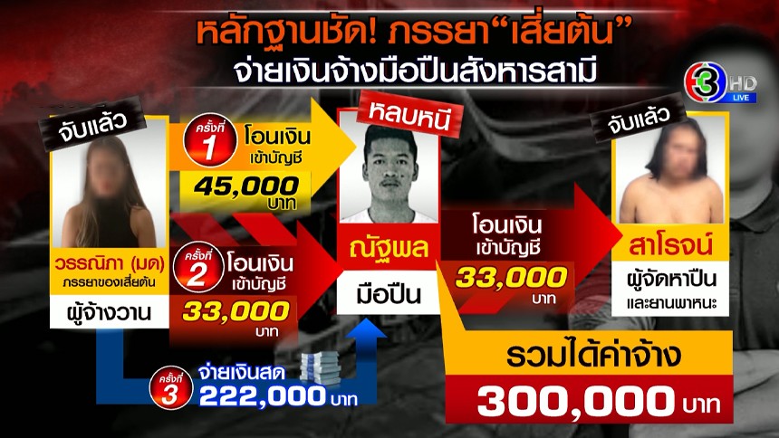 โดยทั้งหมดนี้ คือเบาะแสสำคัญที่ตำรวจมี จนนำมาสู่การออกหมายจับ น.ส.วรรณิภา ภรรยาเสี่ยต้น ในฐานะผู้จ้งวาน และแก๊งลอบสังหารอีก 3 ราย