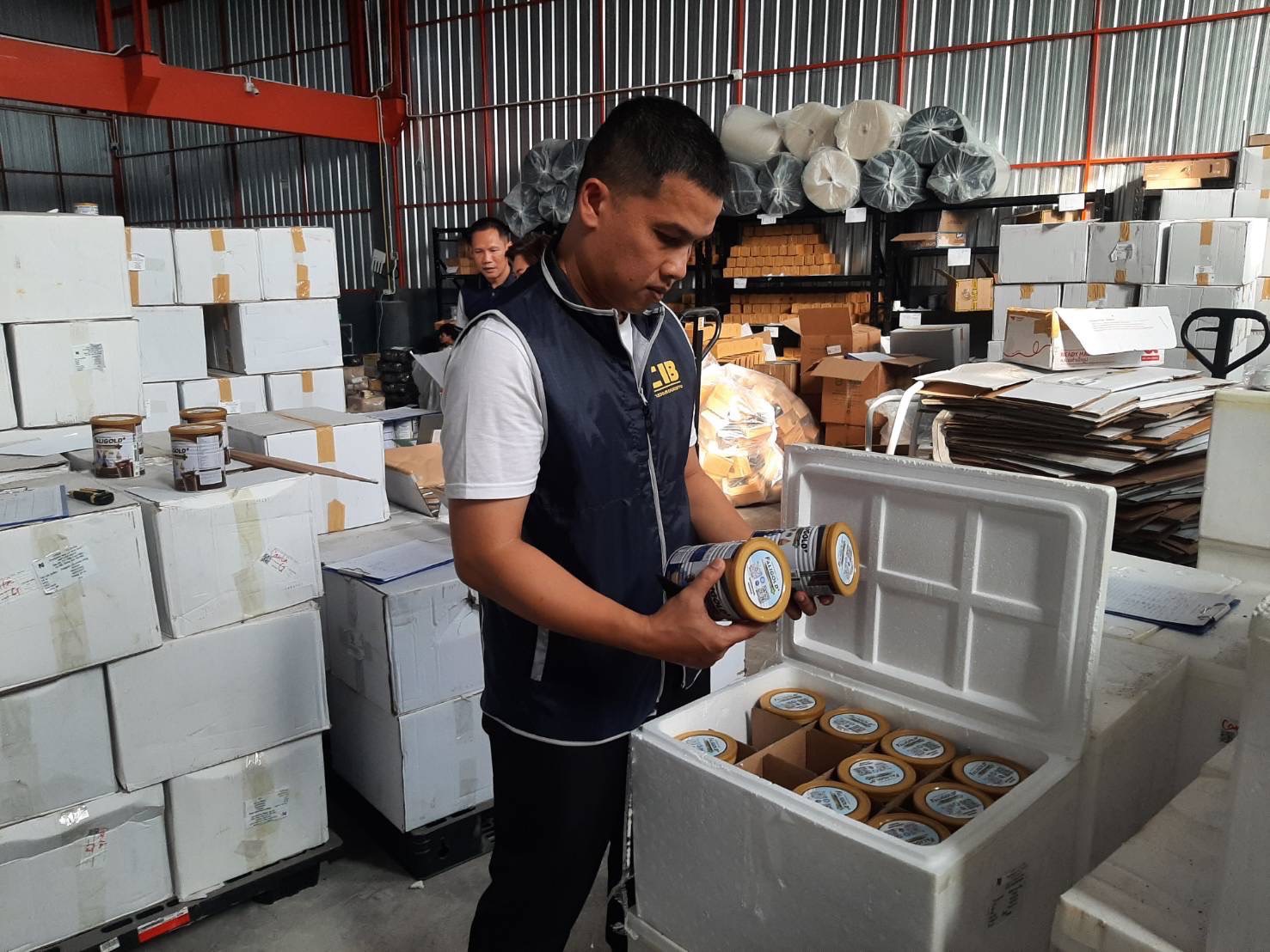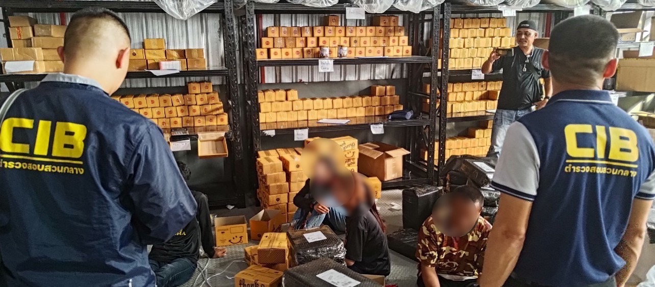 เจ้าหน้าที่ตำรวจได้สืบสวนจนทราบถึงแหล่งจัดเก็บ และกระจายสินค้า โดยเมื่อวันที่ 31 พฤษภาคม 2567 เจ้าหน้าที่ตำรวจ กก.4 บก.ปคบ. ได้ร่วมกับเจ้าหน้าที่ สำนักงานคณะกรรมการอาหารและยา (อย.) นำหมายค้นของศาลเข้าตรวจค้น โกดังเก็บสินค้า ในพื้นที่ ต.บางครุ อ.พระประแดง จ.สมุทรปราการ ตรวจยึดผลิตภัณฑ์อาหาร, ยา และบรรจุภัณฑ์อื่นๆ รวมจำนวน 41 รายการ จำนวนกว่า 20,000 ชิ้น โดยเป็นผลิตภัณฑ์นมผง ยี่ห้อต่างๆ 12,625 กระปุก, ผลิตภัณฑ์อาหารเสริมสำหรับเด็ก จำนวน 1,776 ชิ้น, วิตามินที่ไม่มีเลขสารบบอาหาร 95 ชิ้น, ยาที่ไม่ขึ้นทะเบียนตำรับยา จำนวน 3,660 ชิ้น รวมมูลค่ากว่า 18 ล้านบาท พร้อมจับกุมผู้ต้องหา สัญชาติลาว และสัญชาติ เมียนมา รวมจำนวน 6 ราย ซึ่งผลิตภัณฑ์เสริมอาหารที่ตรวจยึดเป็นนมผงยี่ห้อต่างๆ และยา รวม 8 ยี่ห้อ ได้แก่