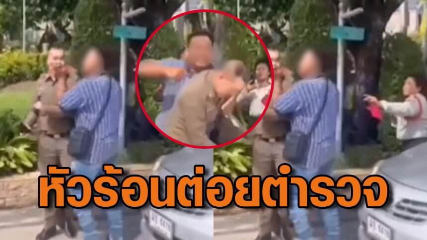 ชายหัวร้อนต่อยตำรวจ ฉุนรถนำขบวนเลี่ยนเลนกะทันหันทำให้เกิดอุบัติเหตุ