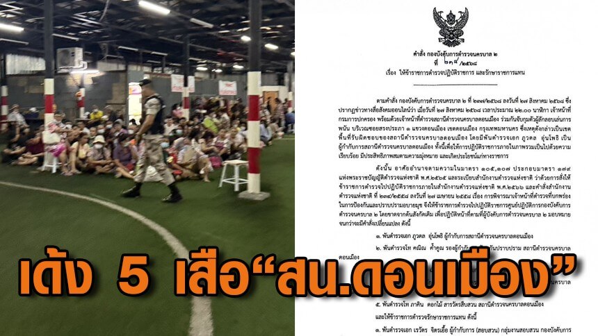 เด้ง 5 เสือ “สน.ดอนเมือง” เซ่นบ่อนในตำนาน ผกก.สน. เสียงอ่อยน้อมรับผลการตัดสิน ยันทำเต็มที่แล้ว