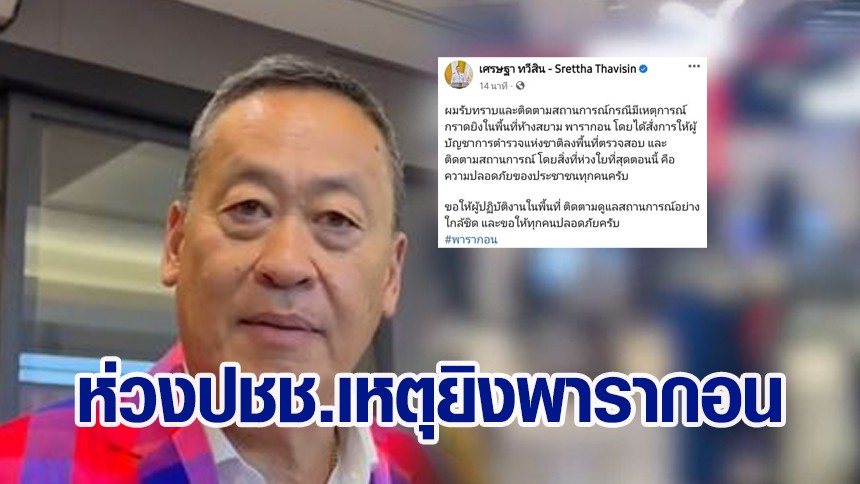 นายกฯ โพสต์ห่วงปชช.เหตุยิงพารากอน สั่ง ผบ.ตร. ลงพื้นที่ตรวจสอบด่วน