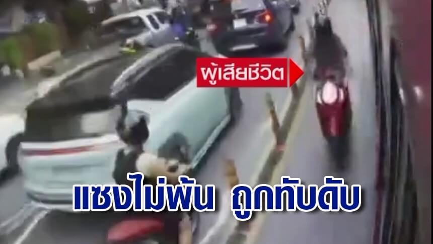 เปิดนาทีระทึก จยย.แซงไม่พ้น เสียหลักมุดเข้าได้รถเมล์ ล้อหลังเหยียบดับ