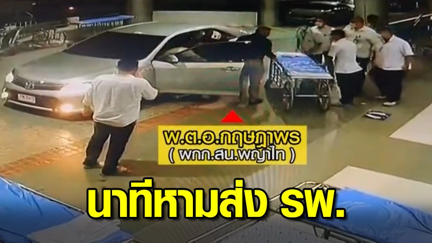 จากภาพจะเห็นว่า รถคันดังกล่าวน่าจะขับมาด้วยความเร็ว และจอดหน้าห้องฉุกเฉิน เพราะรถยังไม่ทันจอดสนิท ตำรวจที่นั่งมาด้วยด้านหลัง ก็รีบเปิดประตูลงจากรถ แล้วรีบเรียกเจ้าหน้าที่ จากนั้นก็มาเปิดประตูด้านหน้าฝั่งคนนั่ง และเมื่อรถจอดสนิทแล้ว ตำรวจที่เป็นคนขับรถ ก็รีบลงมาเพื่อช่วยกันกับเจ้าหน้าที่ นำสารวัตรแบงค์ขึ้นเปลนำเข้าห้องฉุกเฉินทันที