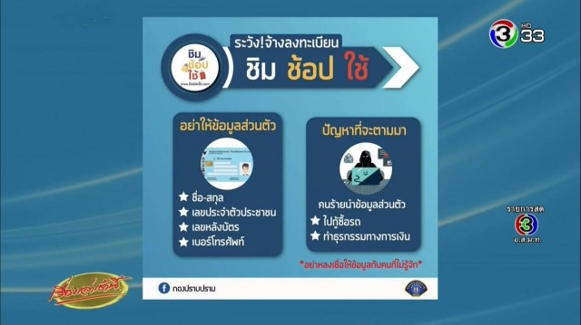 จึงขอเตือนประชาชนอย่าได้หลงเชื่อกลุ่มคนที่อ้างว่าสามารถลงทะเบียน ชิมช้อปใช้ ให้ได้ เพราะอาจเป็นการหลอกขโมยเอาข้อมูลส่วนตัวของคุณไปสร้างความเสียหายในหลายรูปแบบ