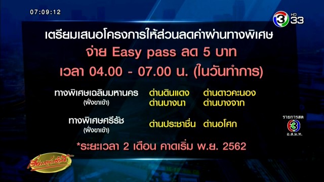 จ่อลดค่าทางด่วน 5 บาท สำหรับผู้ใช้อีซี่พาส เฉพาะช่วงตี 4- 7 โมงเช้า 6 ด่าน!