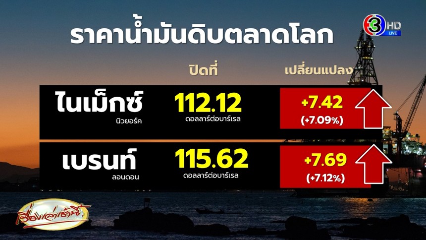 ขึ้นอีก! ราคาน้ำมันโลก ดีดสูงกว่า 7% จับตาน้ำมันไทยอาจปรับขึ้นอีก