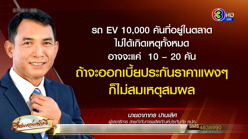 ขณะที่ คปภ บอกว่า รถยนต์ EV ที่มีหมื่นกว่าคัน ไม่ได้เกิดอุบัติเหตุมาก ดังนั้น การที่บริษัทประกันจะเก็บค่าเบี้ยแพงๆ มันไม่สมเหตุสมผล