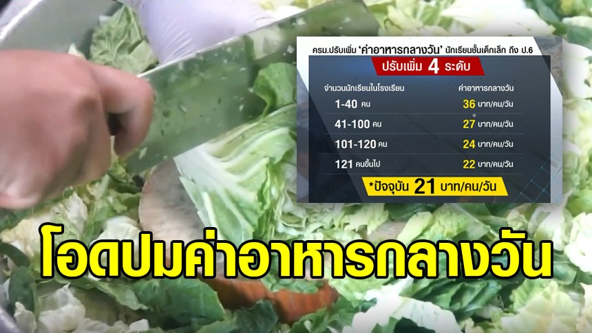 จากปัจจุบัน ที่ได้รับในอัตรา 21 บาทต่อคนต่อวัน เพื่อให้สอดคล้องกับสภาพเศรษฐกิจและสังคมที่มีการเปลี่ยนแปลง ส่งผลให้ค่าใช้จ่ายและวัตถุดิบในการประกอบอาหารมีราคาสูงขึ้น