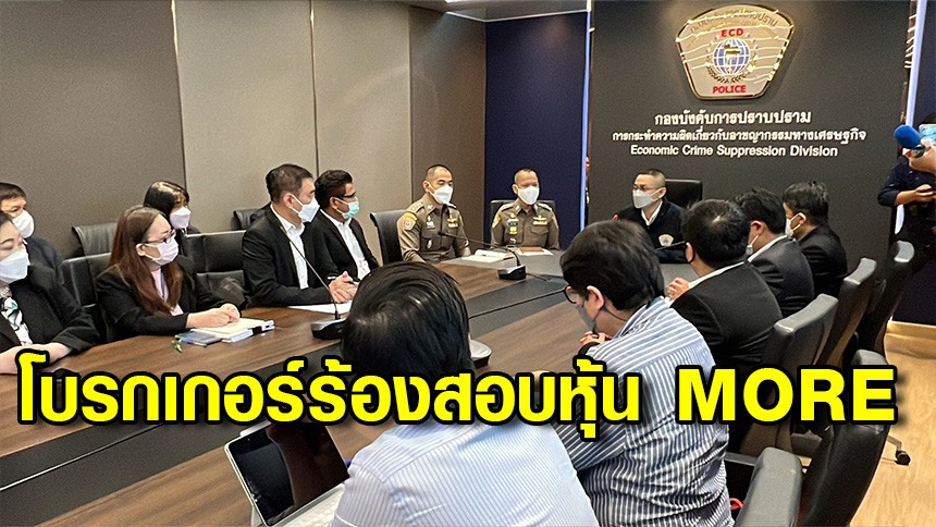11 ตัวแทนโบรกเกอร์แจ้งความ ปอศ.สอบกรณีหุ้น MORE เอาผิดผู้เกี่ยวข้องกรณีซื้อขายหุ้นผิดปกติ ทำเสียหายกว่า 4 พันล้านบาท