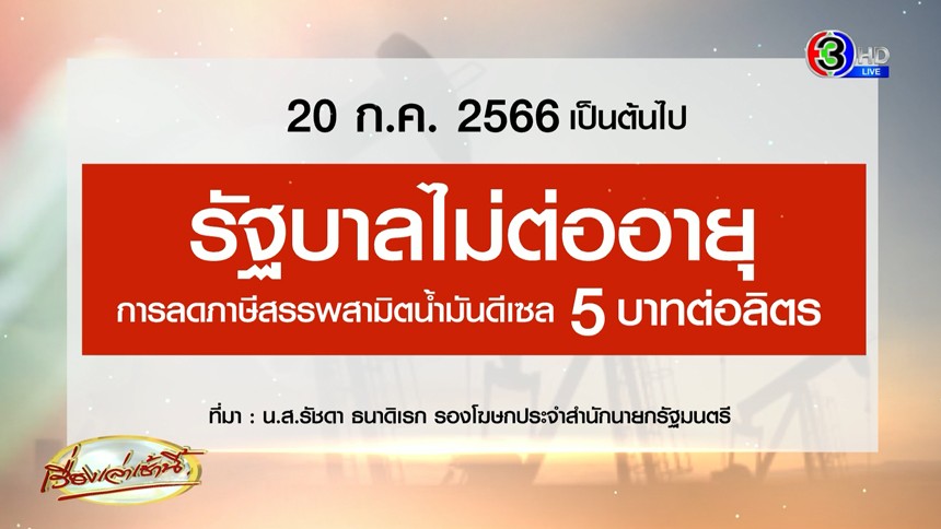 ครม.มีมติ ไม่ต่ออายุ 'ลดภาษีน้ำมันดีเซล 5 บาท' ที่จะหมดอายุ 20 ก.ค. เหตุเกิดผลผูกพันต่อรัฐบาลใหม่