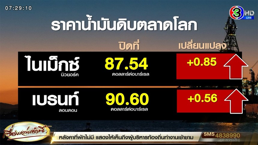 -ตลาดไนเม็กซ์ นิวยอร์ก เพิ่มขึ้น 0.85 ดอลลาร์สหรัฐฯ/บาร์เรล ปิดที่ 87.54 ดอลลาร์สหรัฐฯ/บาร์เรล