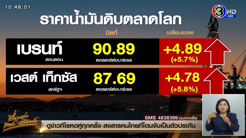 สัญญาน้ำมันดิบเบรนท์ (BRENT) งวดส่งมอบเดือนธันวาคม พุ่งขึ้น 4.89 ดอลลาร์ หรือ 5.7% ปิดที่ 90.89 ดอลลาร์ต่อบาร์เรล และปรับตัวขึ้น 7.5% ในรอบสัปดาห์ ซึ่งเป็นการเพิ่มขึ้นมากที่สุดนับตั้งแต่เดือนกุมภาพันธ์