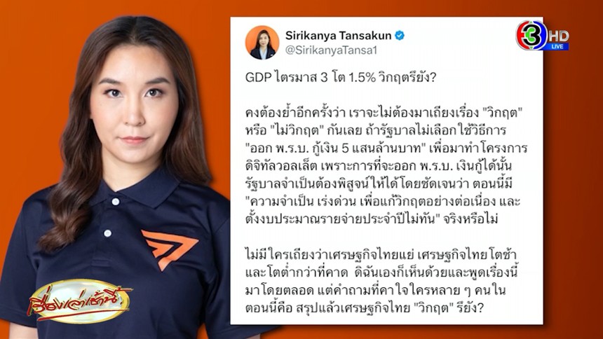 แท็กที่เกี่ยวข้อง เศรษฐกิจไทย ,เศรษฐาทวีสิน ,ศิริกัญญา ตันสกุล