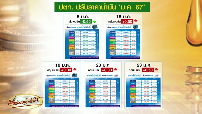 ด้านราคาน้ำมันไทย ตั้งแต่ต้นเดือนมกราคม ที่ผ่าน มีการเปลี่ยนแปลงทั้งหมด 5ครั้ง ดังนี้