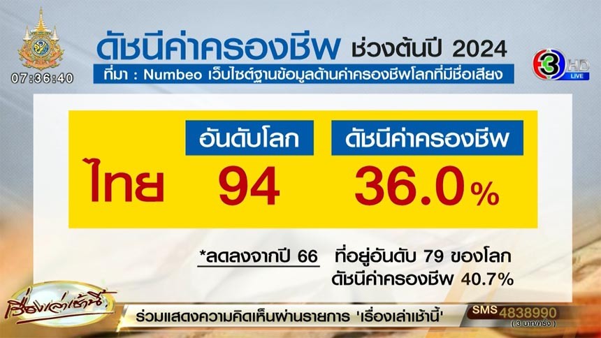 ขณะที่ ค่าครองชีพของไทยต่ำกว่า...