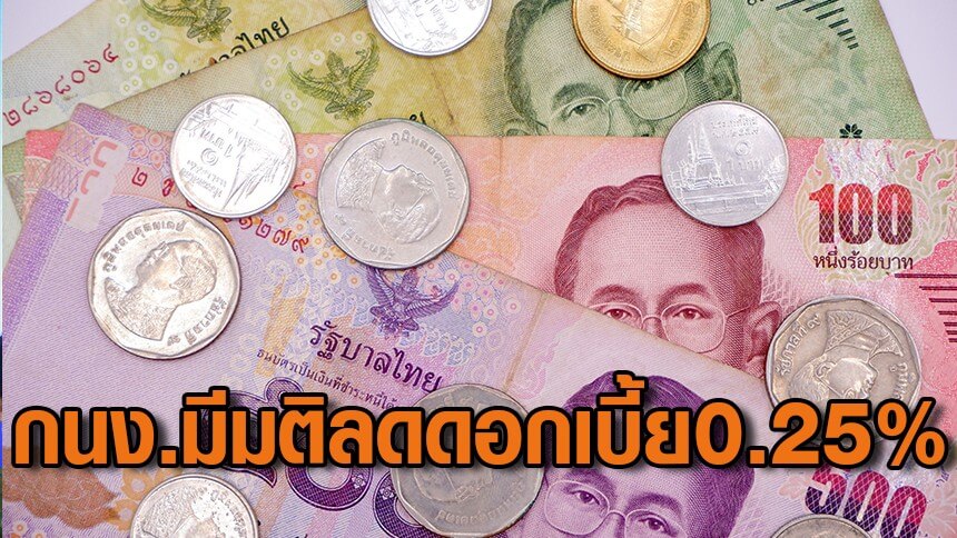 กนง. มีมติ 5 ต่อ 2 เสียง ปรับลดอัตราดอกเบี้ยนโยบายลง 0.25% อยู่ที่ 2.25% ต่อปี