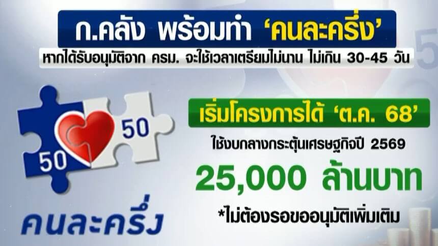 'คนละครึ่ง' รีเทิร์น! คลังพร้อมเดินหน้าทันที ใช้เวลาเตรียมไม่นาน คาดเริ่มได้ ต.ค.68