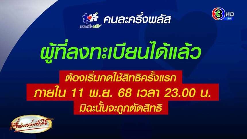 แท็กที่เกี่ยวข้อง คนละครึ่งพลัส ,ลงทะเบียนคนละครึ่งพลัสไม่ทัน