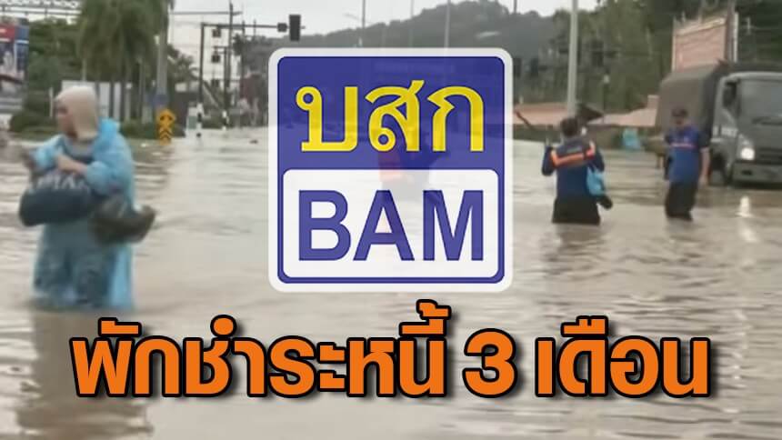 ลูกค้าที่ประสบปัญหาได้รับผลกระทบจากเหตุการณ์ดังกล่าว ก็จะพิจารณาช่วยเหลือด้วยมาตรการพักชำระหนี้ 3 เดือน ขึ้นอยู่กับผลกระทบมากน้อย โดยพิจารณาเป็นรายๆ ไป เพื่อเป็นการบรรเทาความเดือดร้อน โดยสามารถสอบถามรายละเอียดเกี่ยวกับมาตรการช่วยเหลือได้ที่ Call Center 02-630-0700 สำนักงานใหญ่ หรือทางเว็บไซต์ www.bam.co.th, FB และ Line : Bam Thailand