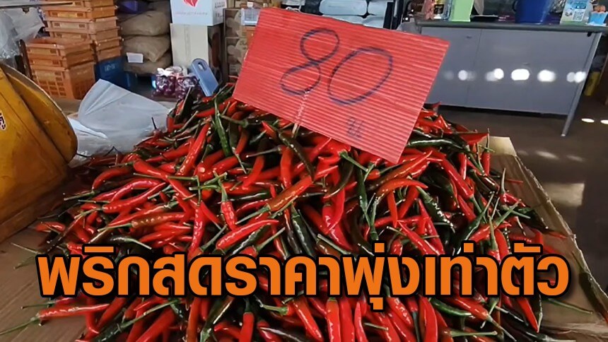พริกสดราคาพุ่งเท่าตัว กก.ละ 80 บาท หลังฝนตกชุกทำผลผลิตเสียหายมาก