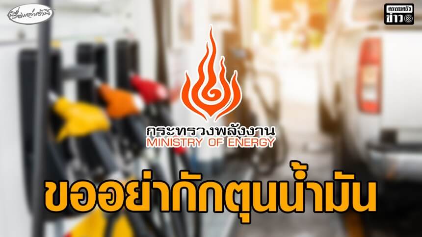กระทรวงพลังงาน ขอประชาชนอย่าตื่นตระหนก อย่ากักตุนน้ำมัน เข้าข่ายผิดกฎหมายและอาจเกิดอันตรายจากการจัดเก็บที่ไม่ถูกวิธี ยืนยัน ไทยมีเพียงพอ พร้อมเตรียมใช้กลไกกองทุนฯ ดูแลด้านราคา