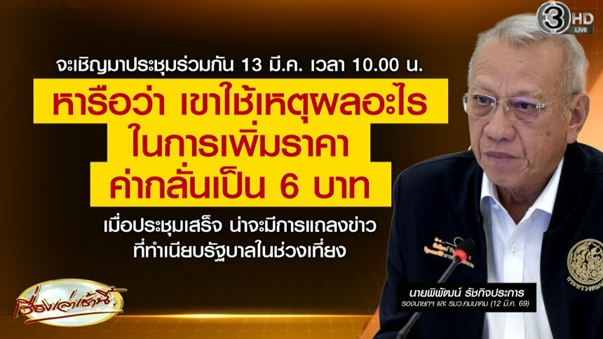 “พิพัฒน์” จ่อเรียกประชุมรับมือราคาค่ากลั่นเพิ่มจาก 2 บาท เป็น 6 บาท วันนี้ (13 มี.ค.) พร้อมหารือกองทุนน้ำมันหากสงครามตะวันออกกลางยืดเยื้อ ลุ้นเท่าปี 65 หรือไม่ ยันยังตรึงราคาน้ำมันถึง 16 มี.ค. ส่วนเหตุยิง “เรือมยุรี นารี” ยังอยู่ในขั้นตอนหาข้อมูล ด้านเรือสัญชาติไทยออกจากจุดเกิดเหตุแล้ว