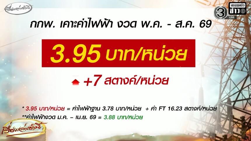 กกพ.เคาะค่าไฟ งวด พ.ค.-ส.ค. ขึ้นเป็น 3.95 บาท/หน่วย