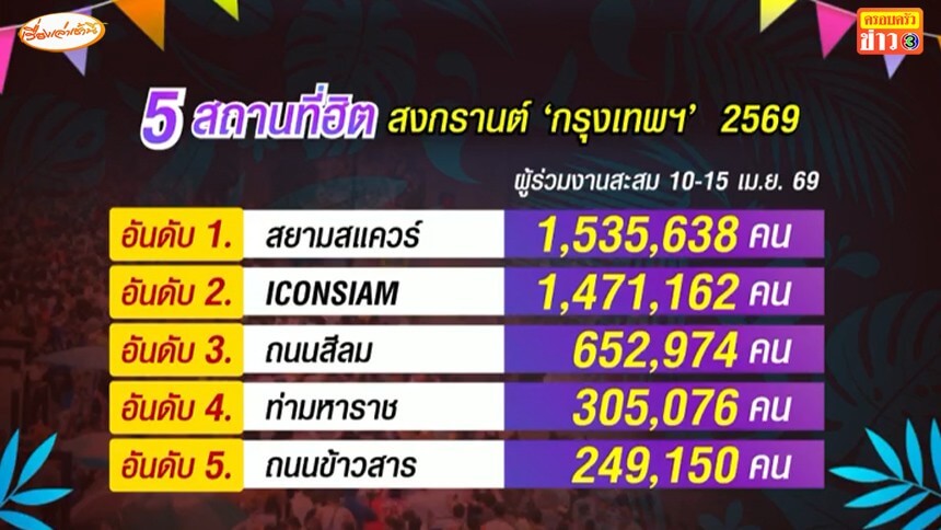 กทม.สรุปยอดสงกรานต์ 69 ยอดคนร่วมงานพุ่งเกือบ 5 ล้านคน โตกว่าปีก่อน 93%
