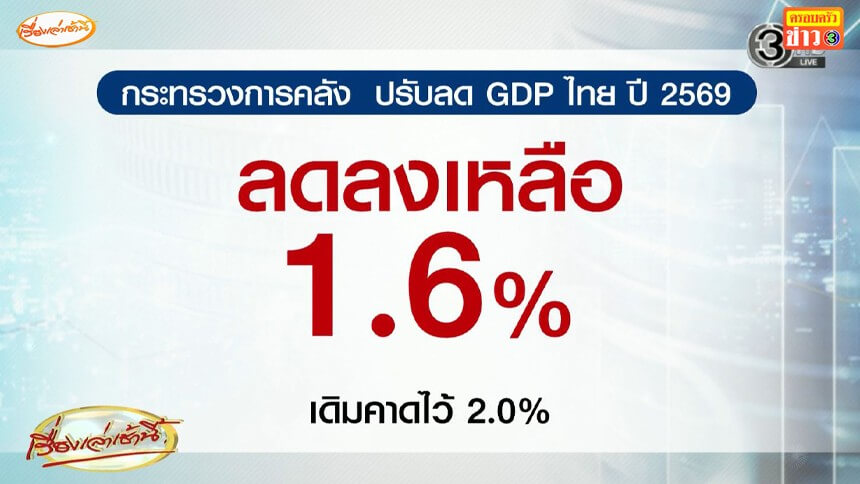 เศรษฐกิจคลังหั่น GDP ปี 69 เหลือโตแค่ 1.6% จากเดิมคาด 2.0%3 ชั่วโมงที่แล้ว10 viewsShareคลังหั่น GDP ปี 69 เหลือโตแค่ 1.6% จากเดิมคาด 2.0%https://youtu.be/nRSTAeTvYQQแท็กที่เกี่ยวข้อง gdpไทย ,GDPไทยปี69