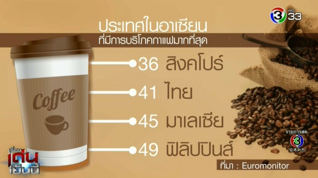 ตลาดกาแฟไทยโตต่อเนื่อง ล่าสุด ไทยติดอยู่ใน 50 อันดับแรกของโลกที่มีการบริโภคกาแฟมากที่สุด เฉลี่ย 300 แก้ว/คน/ปี ขณะที่กระทรวงพาณิชย์ จับมือสมาคมกาแฟไทย ยกระดับกาแฟไทย สู่ ตลาดต่างประเทศ