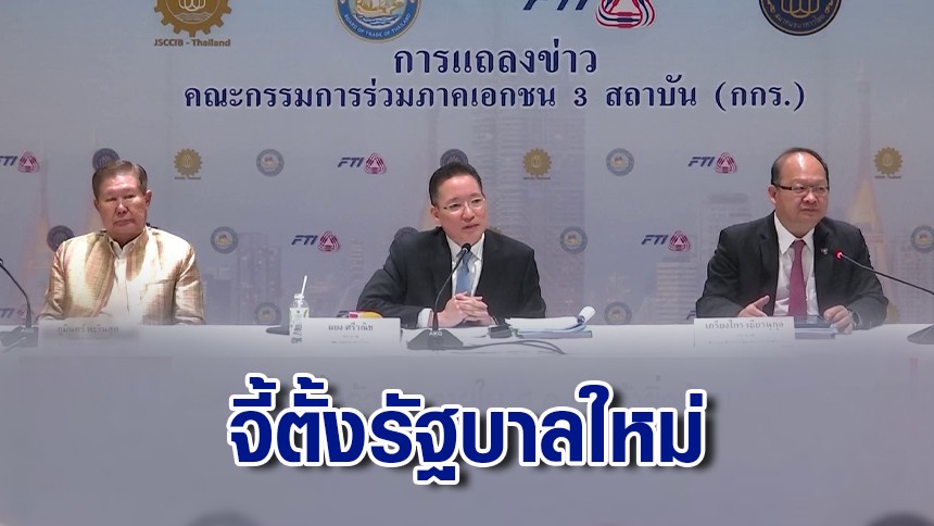 ประชุมคณะกรรมการร่วมภาคเอกชน 3 สถาบัน หรือ กกร. เห็นตรงกันว่า อยากเห็นการจัดตั้งรัฐบาลเป็นไปตามไทม์ไลน์ โดยนายภูมินทร์ หะรินสุต รองประธานกรรมการสภาหอการค้าแห่งประเทศไทย กล่าวว่า สิ่งที่เป็นห่วง คือ ตอนนี้สถานการณ์เหมือนอยู่ในช่วงสูญญากาศ ยังไม่เห็นความชัดเจน ซึ่งภาคเอกชนจะต้องหารือว่าจะทำอย่างไร ที่จะทำให้เศรษฐกิจที่เปราะบางสามารถเดินต่อไปได้
