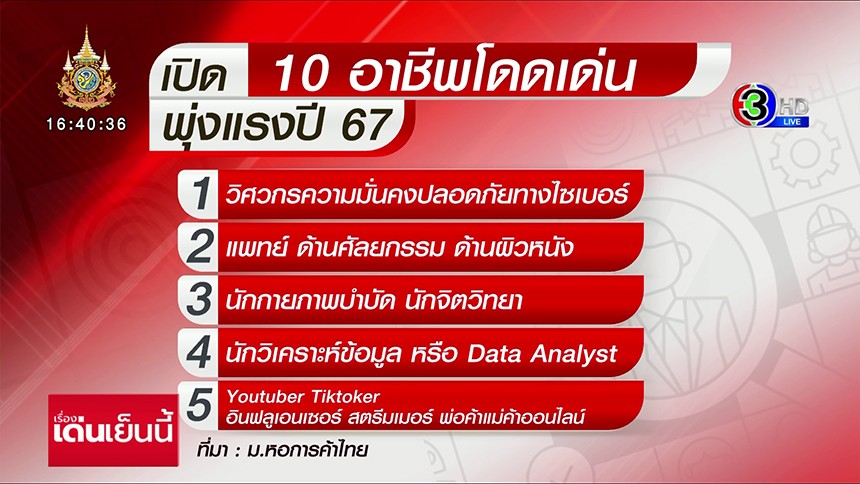 ขณะที่อาชีพในฝันของเด็กรุ่นใหม่ ปี 67