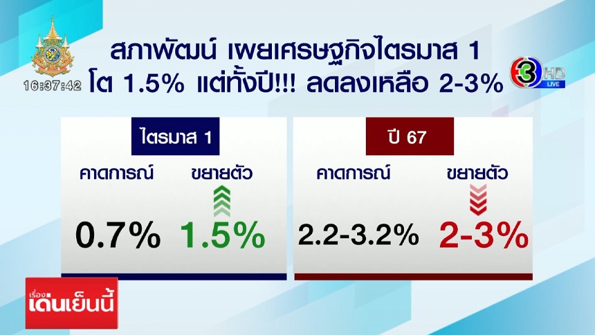 'สภาพัฒน์' เผยเศรษฐกิจไตรมาส 1 โตถึง 1.5% สูงกว่าที่ตลาดคาดจะโตเพียง 0.7%