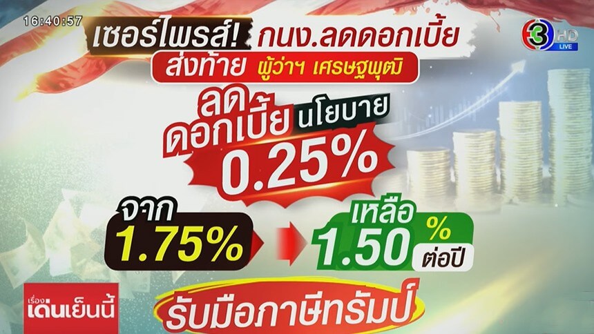 เซอร์ไพรส์! กนง.มติเอกฉันท์ หั่นดอกเบี้ย 0.25% รับมือภาษีทรัมป์