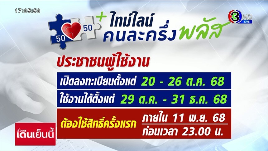 ที่น่าสนใจ คือ โครงการคนละครึ่งพลัส สามารถใช้จ่ายสำหรับอาหารเดลิเวอรี่ได้ โดยจะใช้ได้ตั้งแต่วันที่ 7 พ.ย.- 31 ธ.ค. 68 ซึ่งจะช้ากว่าการใช้จ่ายปกติ ที่สามารถใช้ได้ตังแต่วันที่ 29 ตุลาคม