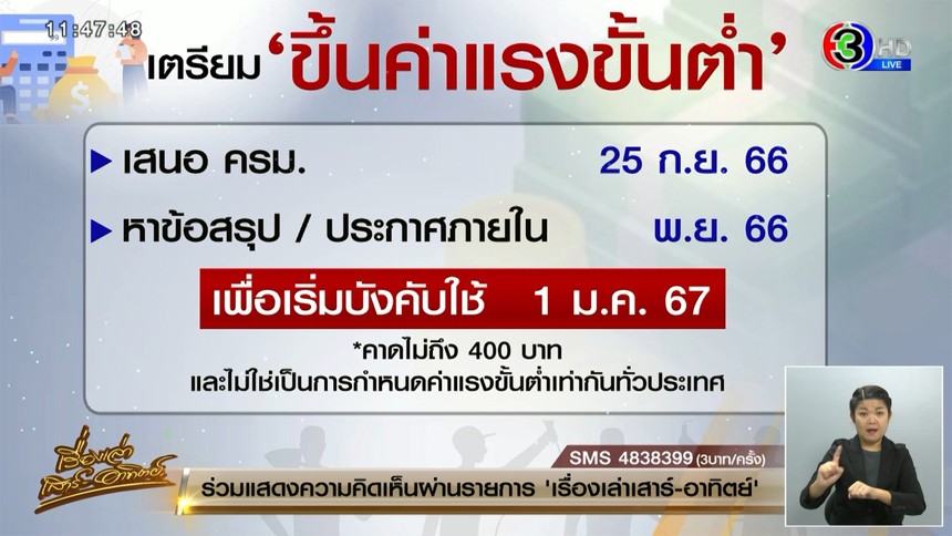 รมว.แรงงาน เผยจ่อ 'ขึ้นค่าแรงขั้นต่ำ' เตรียมประกาศ พ.ย.นี้ แต่ไม่ถึง 400 บาท
