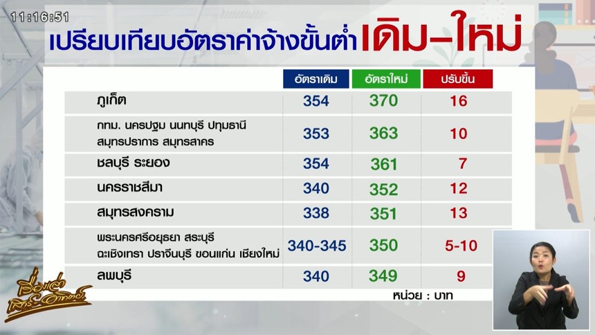 1. อัตราค่าแรงขั้นต่ำ 370 บาท 1 จังหวัด ได้แก่ จังหวัดภูเก็ต จากเดิม 354 บาท