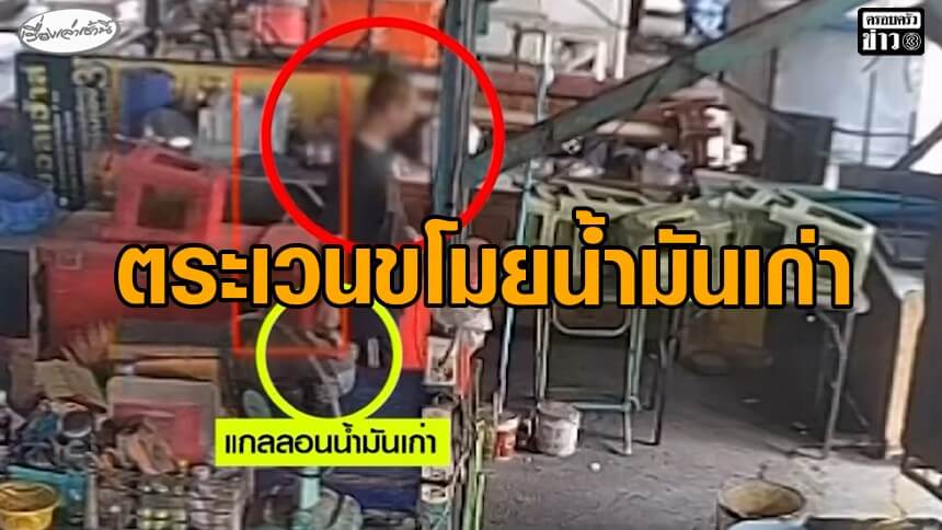 น้ำมันเก่าก็ไม่เว้น! ชายตระเวนขโมยน้ำมันพืชใช้แล้ว นำขายต่อ วงจรปิดจับภาพชัด
