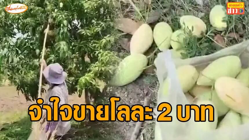 ไม่มีล้งมารับซื้อ จำใจขายมะม่วงน้ำดอกไม้สีทอง กิโลละ 2 บาท ดีกว่าปล่อยให้หล่นจากต้น