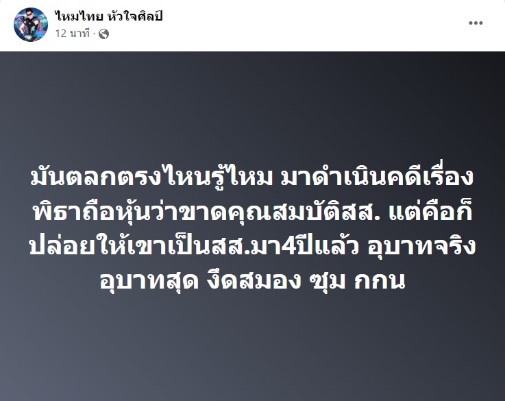 พร้อมระบุอีกว่า “มันตลกตรงไหนรู้ไหม มาดำเนินคดีเรื่องพิธาถือหุ้นว่าขาดคุณสมบัติ ส.ส. แต่คือก็ปล่อยให้เขาเป็น ส.ส.มา 4 ปีแล้ว อุ-าทว์จริง อุ-าทว์สุด งึดสมอง ซุม กกน.”